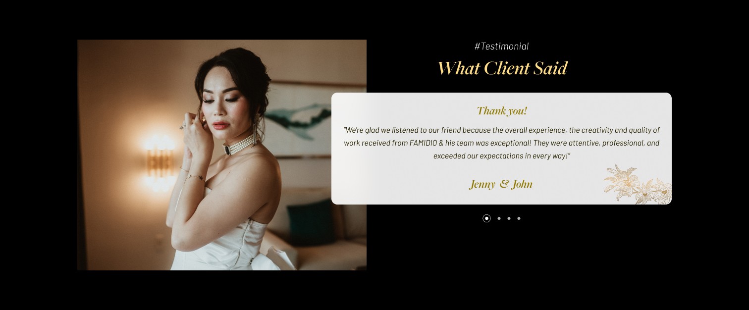 To design a premium website for Famido, a wedding photography and cinematography service, showcasing the artistry of capturing life’s most precious moments.